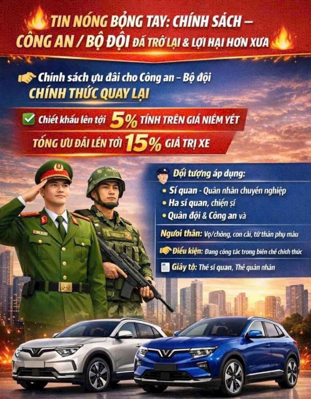 Chi tiết chương trình ưu đãi VinFast cho Công an và Quân đội năm 2026